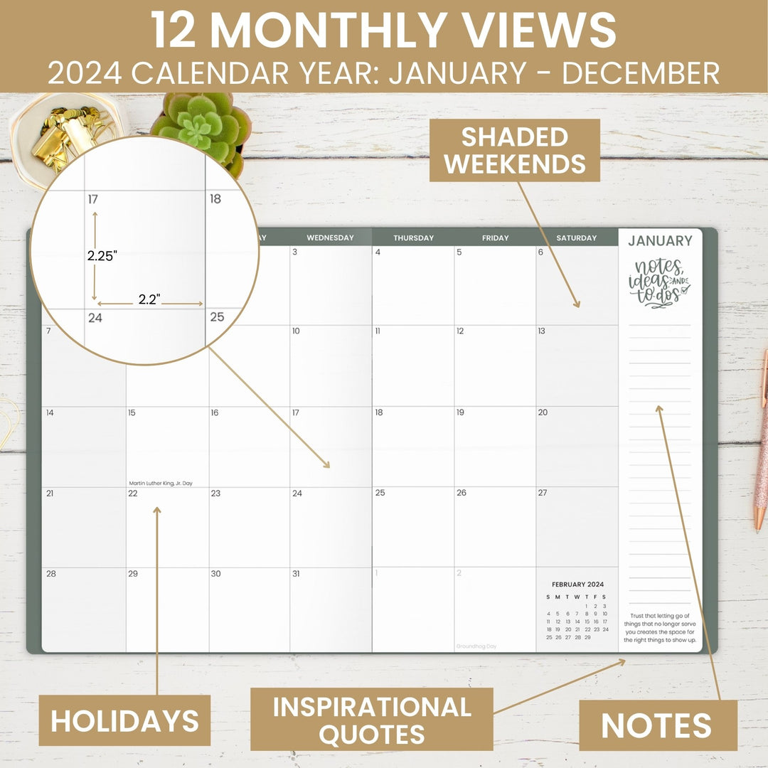 2025 Monthly Planner, Eucalyptus, 9″ x 12″ bloom daily plannersยฎ