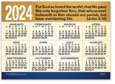 Gospel Pocket (Wallet) Calendar, Laminated Full Color Card (#2590